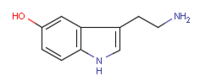 La sérotonine, toujours nommée 5-hydroxy-tryptamine (5-HT), est une molécule issue du tryptophane, un acide aminé. Elle a en premier lieu été identifiée comme étant le facteur libéré par les plaquettes sanguines entraînant une contraction des vaisseaux sanguins, mais c'est aussi un des principaux neuromodulateurs du dispositif nerveux central.